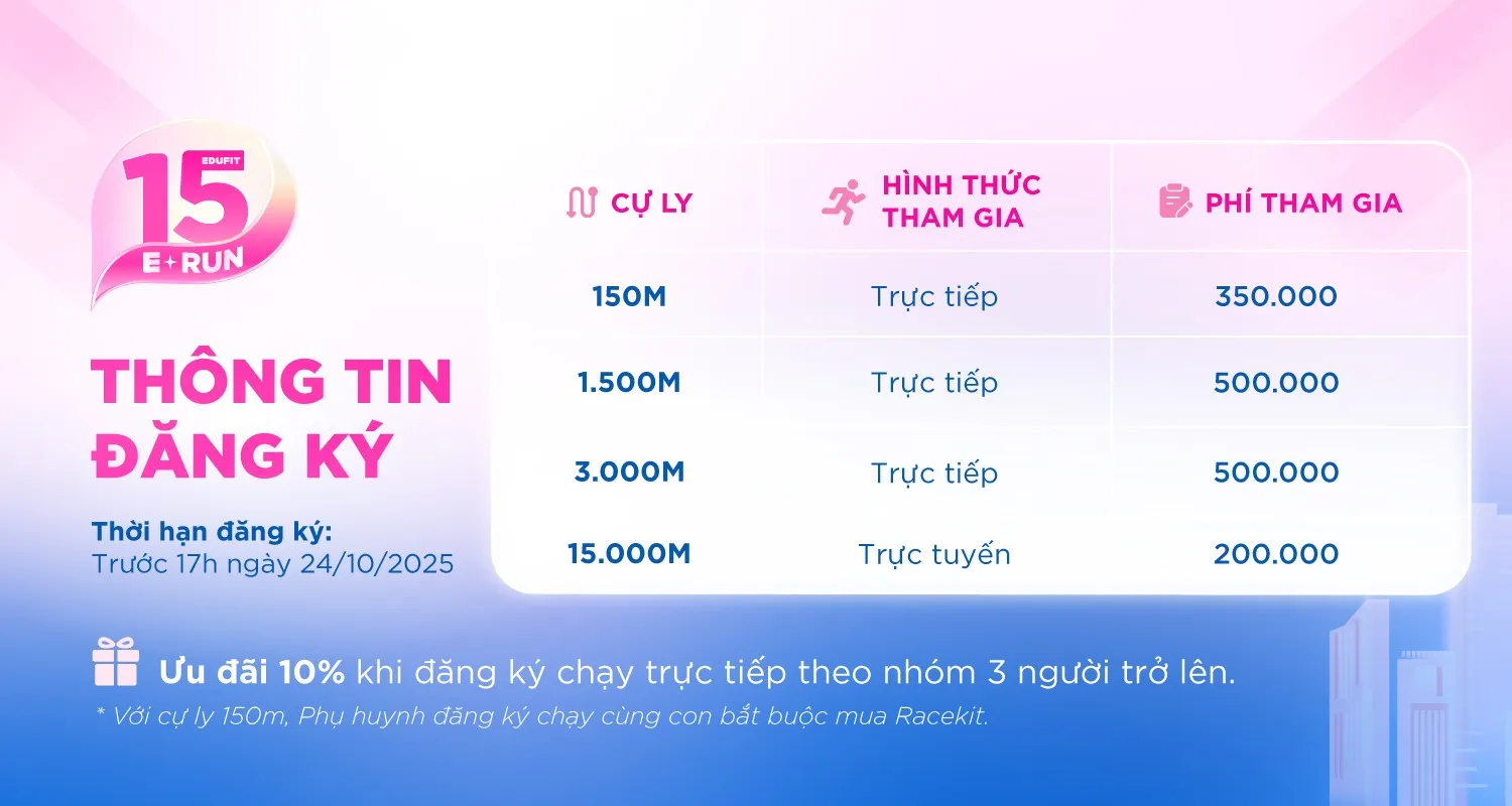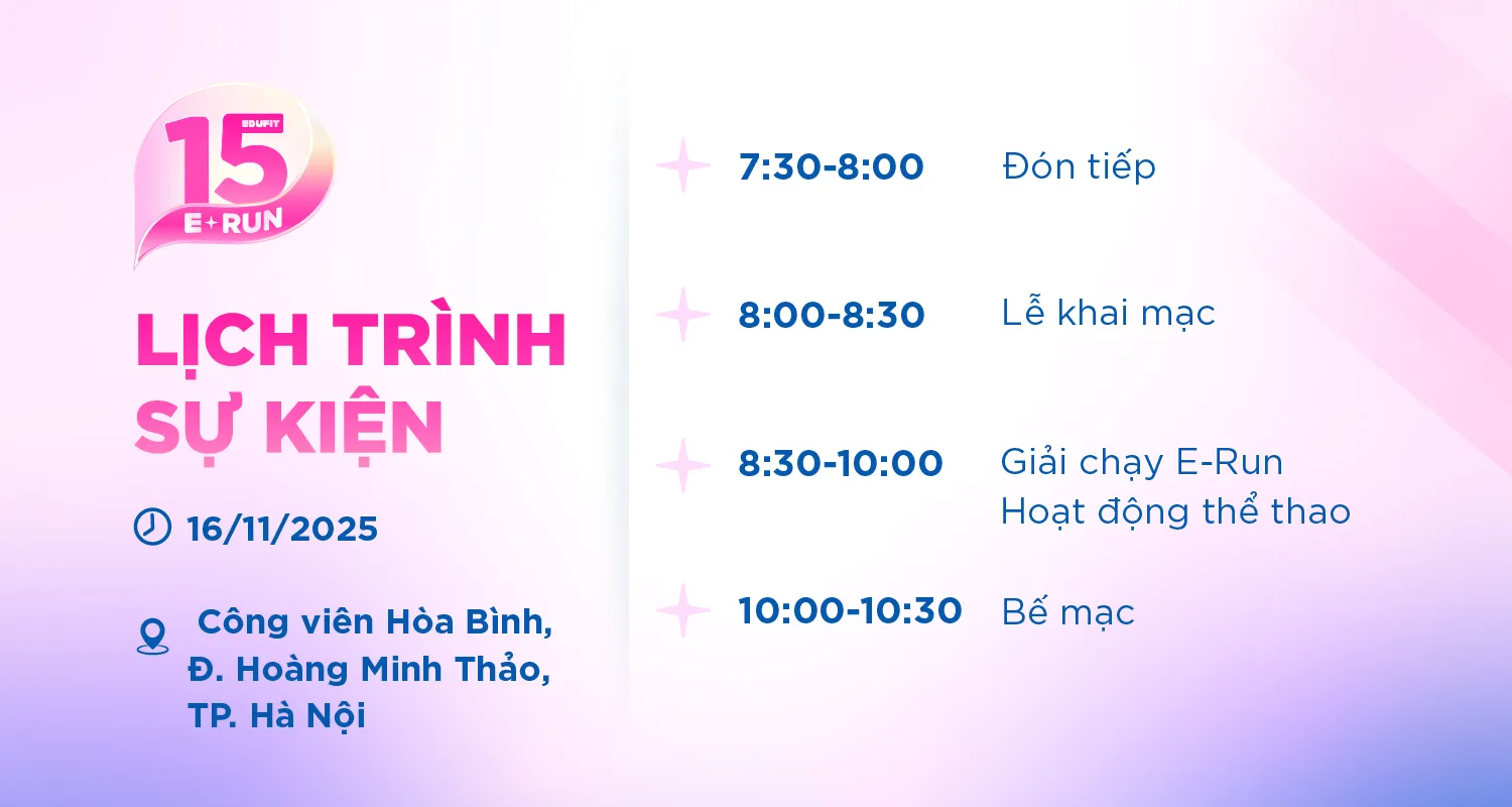 Mỗi sự kiện trong hành trình kỷ niệm 15 năm Edufit đều mang sắc màu và ý nghĩa riêng, nhưng cùng hòa chung một sứ mệnh – lan tỏa những giá trị nhân văn, kết nối cộng đồng và vun đắp ước mơ. Trong đó, sự kiện E-Run 2025 là điểm nhấn đặc biệt, nơi tinh thần thể thao, thiện nguyện và gắn kết được thắp sáng mạnh mẽ nhất.
